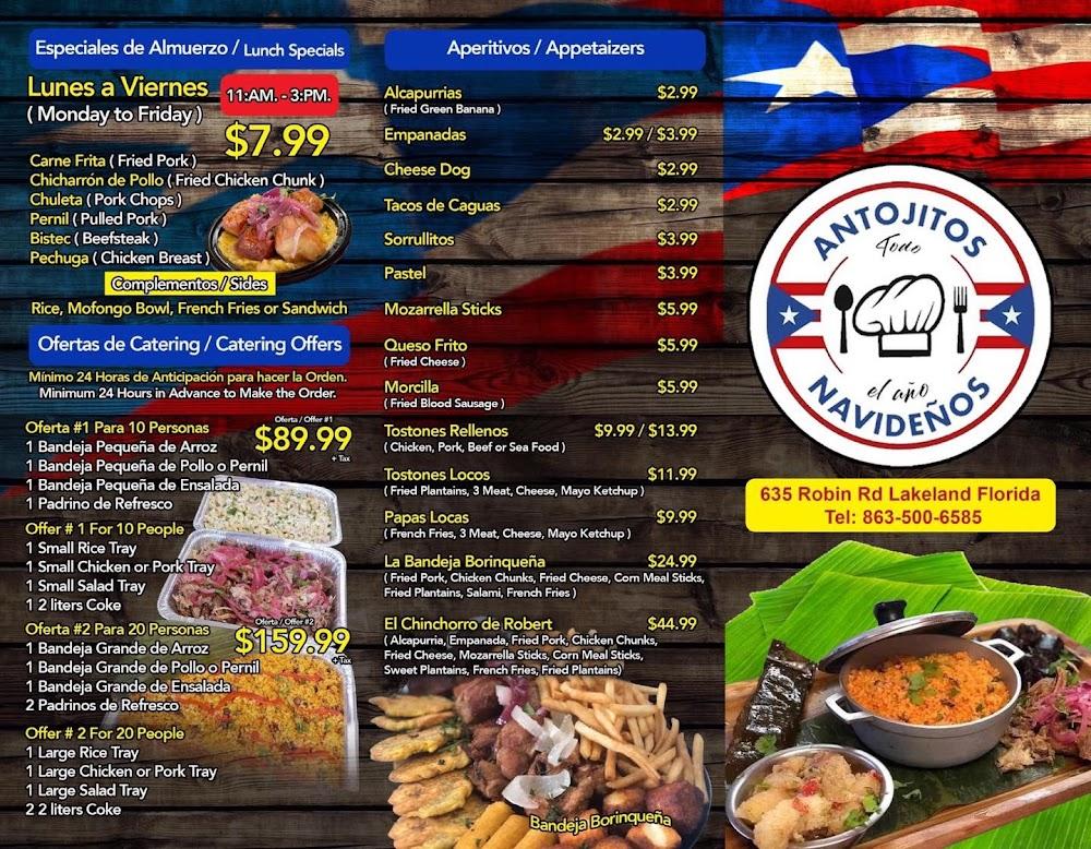 Welcome to Antojitos Navidenos Restaurant, where culinary traditions meet innovative flair! Located in Lakeland, Florida, we’re proud to offer a vibrant menu that fuses Puerto Rican soul food with American comfort, Asian influences, and smoked delicacies. Experience the art of wood-smoked cooking, prepared with love and served with pride. Our inviting atmosphere is perfect for lunch, dinner, or solo dining, and we feature local specialties, excellent cocktails, and delightful desserts. Enjoy convenient options like contactless delivery and takeout, and immerse yourself in bold flavors that transcend borders. Come and taste the evolution of holiday cooking!